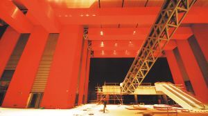 昨晚,上海世博會中國國家館內(nèi)部亮燈后,底樓被映得一片通紅。中國館是上海世博會的永久性建筑之一,目前,中國館已經(jīng)進入全面布展階段,將于今年年底建成竣工。
