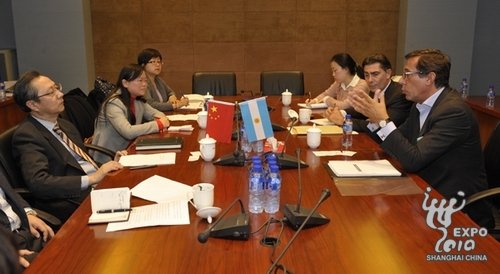 上海世博局副局長黃健之與阿根廷國際貿(mào)易副國務(wù)秘書長路易斯·瑪利亞·克雷克勒一行溝通阿根廷參展事宜