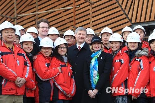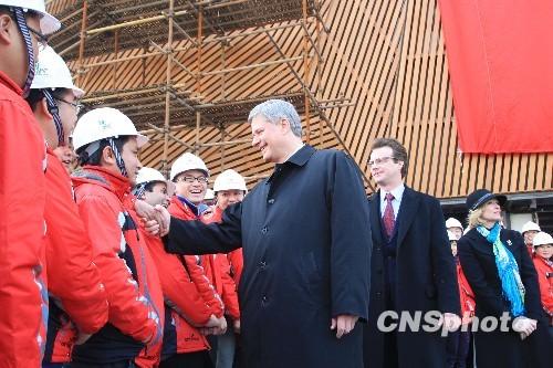 加拿大總理哈珀向上海世博會建設(shè)者問好。中新社發(fā) 潘索菲 攝