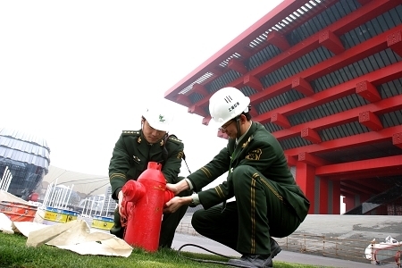 世博園布展已經(jīng)進入沖刺階段,也是防火監(jiān)督最為困難的時期之一。各場館中晝夜施工、交叉作業(yè)、頻繁動火,火災(zāi)的風(fēng)險驟增。目前,上海消防進一步加大現(xiàn)場防火監(jiān)管和執(zhí)勤力度,全力投入到世博場館布展安保工作中。