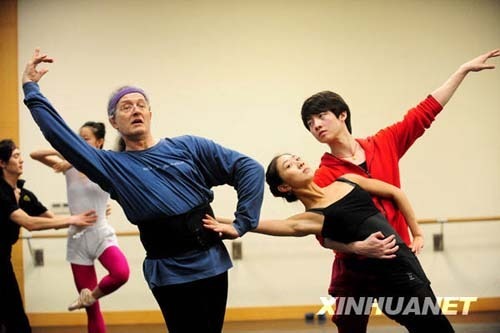 3月24日,外國專家為遼寧芭蕾舞團演員示范動作。