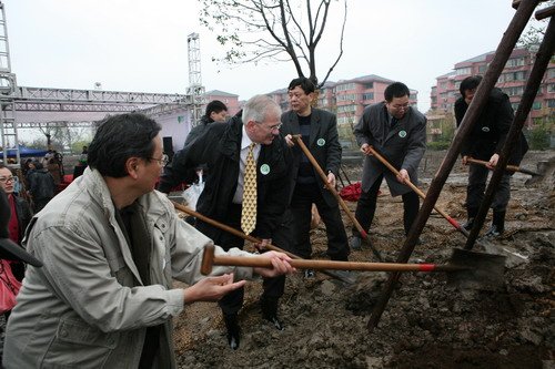 各界代表在世博綠色出行林植下第一棵植樹