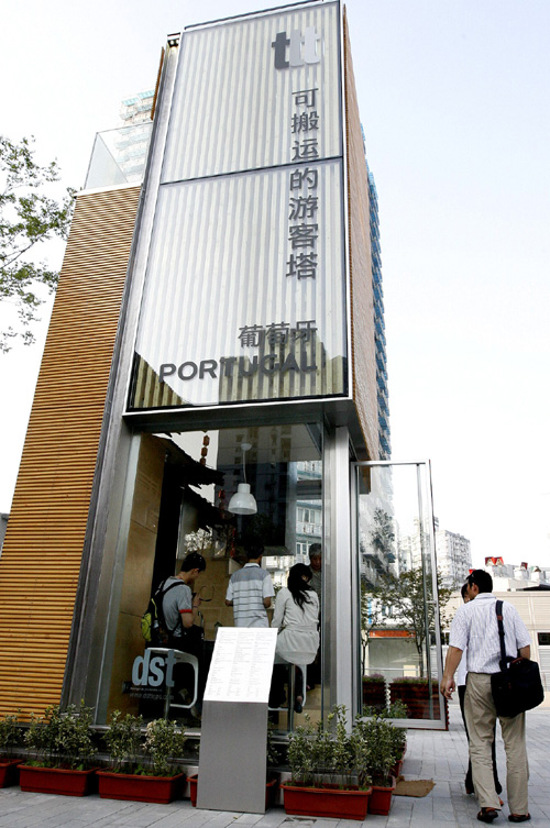 葡萄牙“可搬運(yùn)的游客塔”強(qiáng)調(diào)簡(jiǎn)潔和實(shí)用(6月6日攝)。新華社記者 程敏 攝