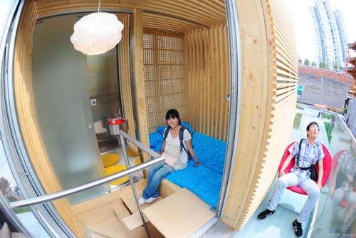 “造價(jià)還是有點(diǎn)高”,了解到小屋的整體造價(jià)需要大約80萬人民幣時(shí),陳龍說,“盡管按單位面積來算,也算不上天價(jià),但在我們的城市里,并不容易找到隨時(shí)可以安放的地方”。設(shè)計(jì)方帶來的這個(gè)案例展示,是想給需要這種房子的人一個(gè)購(gòu)買的機(jī)會(huì),也是提供一個(gè)房屋居住的解決方案,特別是在房?jī)r(jià)很高的城市里,這樣的設(shè)計(jì)符合世博會(huì)的主題,城市讓生活更美好,關(guān)鍵是要為不同的需求提供相應(yīng)的解決方案。通過親身體驗(yàn),陳龍和杭星的共同感覺是,這樣的現(xiàn)代化“蝸居”解決方案相當(dāng)有意義,目前雖然還只是在實(shí)驗(yàn)階段,但未來的前景應(yīng)該是很廣闊的,關(guān)鍵在于要把成本再降低,再解決安放地點(diǎn)許可的問題。 “能住在這樣的房子里,還是挺誘人的,特別是對(duì)買不起住房的年輕人來說,也多了一種選擇”。