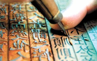 來(lái)自江蘇揚(yáng)州的民間工藝大師正在展示雕版術(shù) 攝影:張海峰