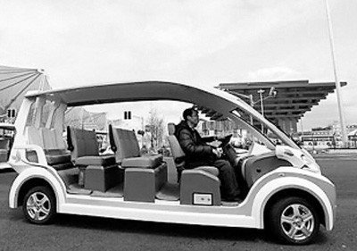 在世博園區(qū)的純電動(dòng)公交車上,來自廣州的李先生說汽車零排放早就聽說了,但是沒有親身體驗(yàn)過,今天是第一次乘坐。李先生說:“如果以后城市里的燃油公交車都能換成電動(dòng)公交車那就好了,不僅節(jié)約了能源還減少了汽車尾氣,一舉兩得!”