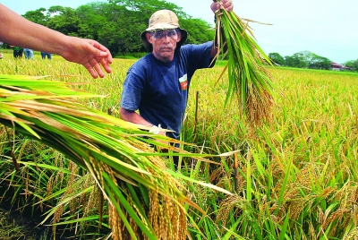 5月1日,哥斯達(dá)黎加實(shí)驗(yàn)站工作人員在該國(guó)北部水稻研究基地收割雜交水稻。 目前,中國(guó)雜交水稻在哥斯達(dá)黎加北部水稻研究基地已試種成功。預(yù)計(jì)產(chǎn)量每公頃將達(dá)8000公斤。新華社發(fā)