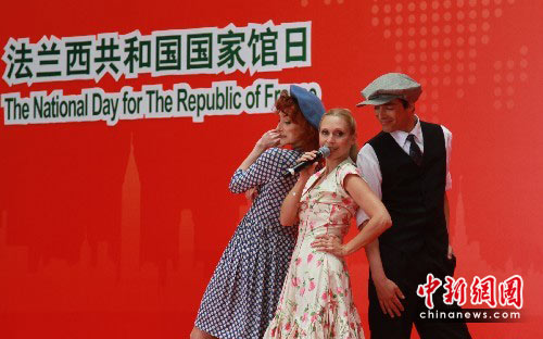 6月21日,上海世博會法國國家館日慶典活動在園內(nèi)舉行,法國藝術家表演特色歌舞,盡顯浪漫風情。中新社發(fā) 殷春永 攝 中新社發(fā) 攝