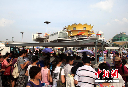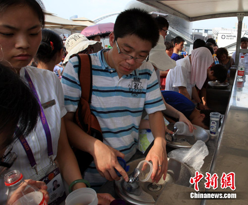 高溫世博園內(nèi)直飲水吃香。潘索菲 攝