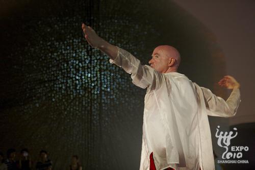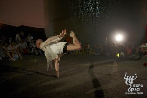 5日晚上,英國(guó)藝術(shù)家艾倫·格瑞格(Alan Greig)在“種子圣殿”前展現(xiàn)了精彩絕倫的蘇格蘭現(xiàn)代舞蹈藝術(shù)。艾倫 格瑞格是X Factor舞團(tuán)的藝術(shù)總監(jiān),他的舞蹈作品集運(yùn)動(dòng)、刺激與娛樂性于一體,此次演出片段是根據(jù)他在2009年上海舞蹈節(jié)中首演的獨(dú)舞《Into the Light》改編而成。