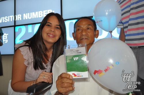上海世博會墨西哥館迎來第兩百萬名游客,這也意味著世博會剛剛進程過半,該館的游客接待量已超過了當初“世博期間游客總量約184萬名”的預(yù)期。來自黑龍江大慶市的退休老教師李相文成為幸運者,與墨西哥館全體工作人員一起慶祝了這一有紀念意義的時刻。