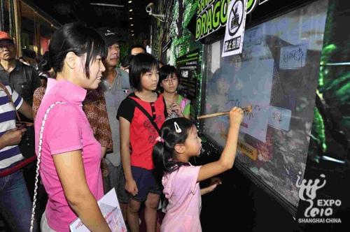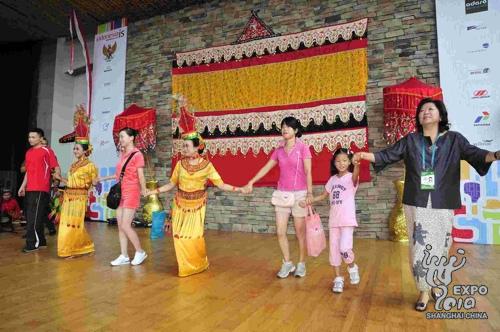 今天與葉珍母女一起來印尼館的還有王凱、王燁夫婦,他們與葉珍同在一家保險(xiǎn)公司工作,葉珍母女把獲得的兩張機(jī)票中的一張送給他們,讓他們也享受到了印尼館帶來的幸運(yùn)。(世博網(wǎng))