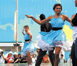 昨天(17日),美國(guó)演員在世博園區(qū)美洲廣場(chǎng)表演。當(dāng)日,主題為"舞動(dòng)美國(guó)"歌舞的表演吸引眾多觀博的游客駐足欣賞。