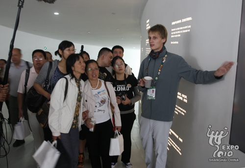 27日上午,網(wǎng)上世博會“展館直通車”駛?cè)氲滒^。丹麥館館長Stine Guldmann與網(wǎng)上世博會項目總監(jiān)王立平熱情地接待了前來的10名幸運網(wǎng)友,并向他們贈送了精美的禮品。