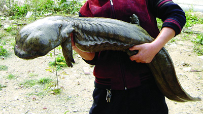 赴上海參展前的大鯢“魚(yú)王”(本報(bào)資料照片)