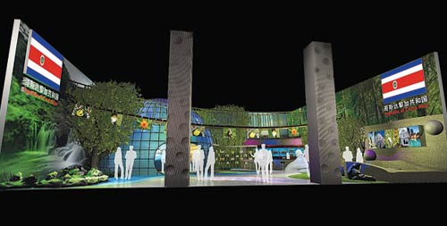 作為中美洲和南美洲的文化交會(huì)處,哥斯達(dá)黎加不僅擁有多樣的文化,而且是一個(gè)與自然和諧共處的國(guó)家。在旅游業(yè)、商業(yè)、經(jīng)濟(jì)、社會(huì)蓬勃發(fā)展的同時(shí),它保持著良好的生態(tài)平衡。展館以石球?yàn)樵O(shè)計(jì)元素,象征著首批原住民的獨(dú)特文化,體現(xiàn)了國(guó)家特色。展示以圖片、視頻等形式,圍繞和平、工業(yè)投資、教育、環(huán)境資源等四大主題展開(kāi)。展館內(nèi)能品嘗到地道的當(dāng)?shù)孛朗,特別是能夠現(xiàn)場(chǎng)品嘗咖啡,并觀賞咖啡師精湛的制作工藝。館內(nèi)舉辦各種文化表演、當(dāng)代音樂(lè)演奏會(huì)、藝術(shù)展、雞尾酒會(huì)等活動(dòng)。