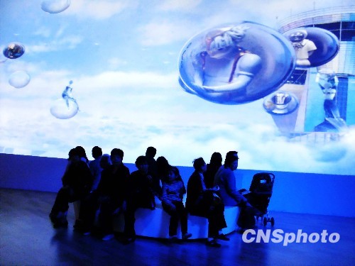 芬蘭館展示了很多高科技產(chǎn)品,例如展廳的互動電子藝術(shù)墻上有200個移動電話,觀眾也可以將自己的作品添加進(jìn)去;又如電梯采用最新射頻技術(shù),設(shè)計也很前衛(wèi)。
