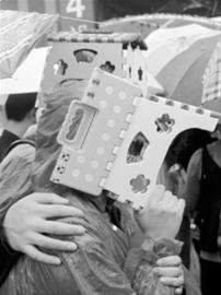 帶上小板凳,下雨還能當(dāng)“頭盔”。 邵劍平 現(xiàn)場圖片
