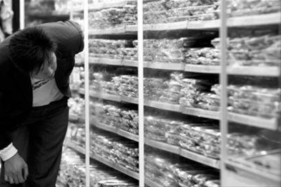 世博軸(網(wǎng)上世博軸)下的羅森超市三個冰柜內(nèi)放滿各式快餐,方便游客選購。 世博記者 殷立勤 現(xiàn)場圖片
