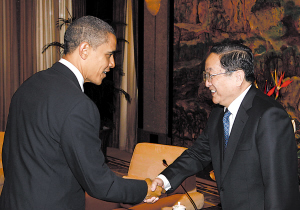 圖為俞正聲會見美國總統(tǒng)奧巴馬。