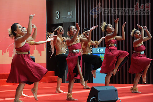 在簡短的儀式之后,來自大洋洲的演員們和來自法屬波利尼西亞的舞蹈表演者還獻(xiàn)上了精彩的演出,飛揚(yáng)的裙擺和忘情的吶喊把島國的淳樸熱情釋放得淋漓盡致。