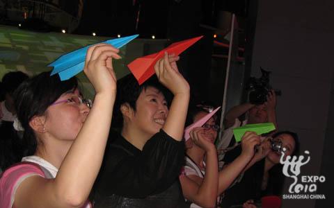 于丹和四名學(xué)生共同放飛心愿紙飛機(jī)