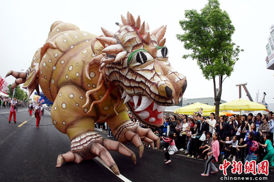 5月22日,上海世博會波蘭國家館日的活動中,一場“波蘭龍的巡游”,成為世博園最新亮點。波蘭和中國一樣,對龍有著特殊的崇拜。中新社發(fā) 杜洋 攝