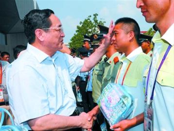 8月1日,上海氣溫高達(dá)38.6℃。正午時(shí)分,俞正聲和市領(lǐng)導(dǎo)吳志明、楊雄、丁薛祥、張學(xué)兵等首先來到世博園區(qū)后灘出入口,親切慰問公安、武警、志愿者和票務(wù)工作人員,感謝大家為世博安全運(yùn)行所作出的貢獻(xiàn)。