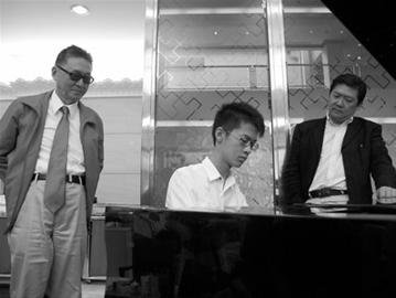 這邊波波跟偶像交流正歡,那邊李戡也跟自己的偶像、著名指揮家余隆聊得起勁,并大膽“班門弄斧”秀了一把鋼琴技藝,彈奏一曲 《黃河》選段,并接受了大師的現(xiàn)場指點。當?shù)弥铌痪们皠偙槐贝箐浫『,余隆很是欣喜,他表示像李戡這樣既有文采又有藝術(shù)情趣,絕對是現(xiàn)代年輕人的榜樣,并希望今后能有機會在北京和李戡多聊聊音樂,甚至希望找時間和交響樂隊合作一下,讓李戡能走上舞臺,完成他演奏《黃河》的夢想。