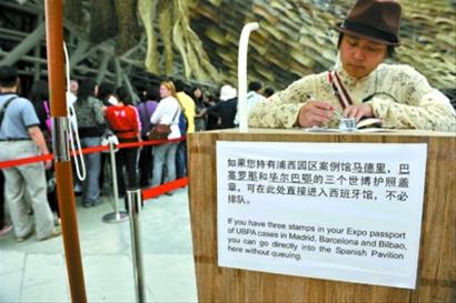 集齊浦西三個西班牙案例館印章,游客就能通過快速通道入西班牙館參觀 龔星攝