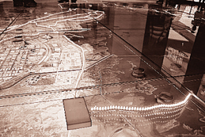 進(jìn)入伊茲密爾案例館,長(zhǎng)9.5米、寬5.7米的透明玻璃地面內(nèi),分布伊茲密爾市完整的衛(wèi)星圖片,利用燈光、小模型生動(dòng)展示了大海峽工程的軌道和站點(diǎn)分布——4000多公里的海岸線,環(huán)繞一個(gè)復(fù)雜管網(wǎng)。污水通過(guò)管線流向泵站,再排放到污水處理站,最終成為凈水,流向愛(ài)琴海。(葉薇)