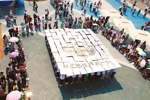 昨天(5日)是世界環(huán)境日,上海世博會唯一參展的國際非政府自然保護組織——世界自然基金會(WWF)昨天迎來榮譽日。在世博園大洋洲廣場,100名來自華東師范大學的志愿者運用手中的圖板集體合作拼出了大熊貓的形象,并向現(xiàn)場觀眾發(fā)出“保護地球,有我一個”的號召,以此來向所有世博觀眾傳遞信息:地球是我們賴以生存的家園,可是地球的自然資源并不是取之不盡、用之不竭的。