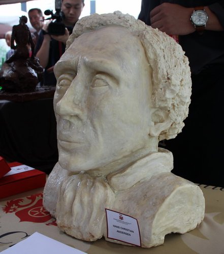 世博園歐登塞案例館白巧克力做的安徒生雕像