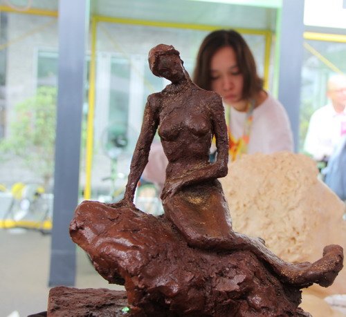 時(shí)值上海黃梅天,天氣悶熱空氣濕度大。冷卻凝固白巧克力制成的安徒生雕像一遇到空氣,臉上立刻涔涔的淌了滿臉的“淚水”,像極了某種隱喻。安徒生的一生,是凄涼且沒(méi)有愛(ài)情的一生。但同時(shí)他又是一個(gè)不幸的幸運(yùn)者,他的童話風(fēng)靡世界。