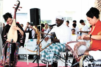 中國(guó)的琵琶、古箏與沙特的烏德琴、阿拉伯鼓合奏出現(xiàn)在世博園。從昨天中午12點(diǎn)開始,每隔兩個(gè)小時(shí),中沙兩國(guó)藝術(shù)家在沙特館合作演出,慶祝兩國(guó)建交20周年。