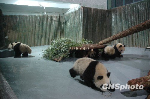 2010年1月5日,由臥龍中國(guó)保護(hù)大熊貓研究中心精心遴選的10只“世博熊貓”經(jīng)空運(yùn)抵達(dá)上海,集體搬入上海動(dòng)物園的新家。憨態(tài)可掬、活潑可愛(ài)的“世博熊貓”吸引了眾多關(guān)注的目光。屆時(shí),海內(nèi)外游客在參觀上海世博會(huì)的同時(shí)還可領(lǐng)略中國(guó)大熊貓的風(fēng)采。 中新社發(fā) 阿凱 攝