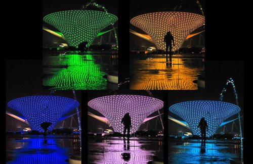 南起世博園區(qū)邊緣、北至黃浦江的世博軸是本屆世博會的主入口和主軸線,是一個集商業(yè)、餐飲、娛樂、會展等服務(wù)于一體的大型商業(yè)、交通綜合體。除了造型極具美感之外,世博軸還有著多項重要的科技創(chuàng)新,如使用引黃浦江水當(dāng)空調(diào),減輕城市的熱島效應(yīng),以及使用“陽光谷”為地下進行采光和蓄水等,無一不展示當(dāng)今國際先進的節(jié)能、降耗、環(huán)保和生態(tài)等綠色建筑設(shè)計理念。