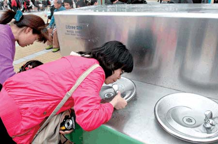 世博園一天玩不夠,一整天在園區(qū)里,喝水肯定必不可少。由于游客不能攜帶液體飲料和瓶裝水入園,上海世博會組織者專門為游客免費提供直飲水。然而,這些游客到任意飲水區(qū)就能免費喝到安全的飲用水其實很有門道。
