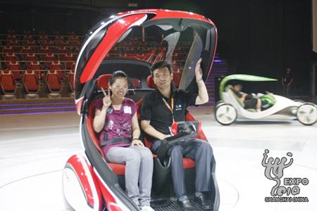 隨后,網(wǎng)友們來到了上汽-通用館,觀看了主展影片、舞臺秀,還在汽車館的主舞臺上試乘了概念車。“太爽了!”來自上海政法學(xué)院經(jīng)濟(jì)管理系國貿(mào)專業(yè)的學(xué)生、網(wǎng)友王宛露在體驗后興奮地說,“坐上EN-V概念車,感覺相當(dāng)舒服,它在旋轉(zhuǎn)的時候絲毫沒有讓人感覺頭暈,很穩(wěn)。希望2030年的汽車和城市交通能像汽車館展現(xiàn)的那么完美!”