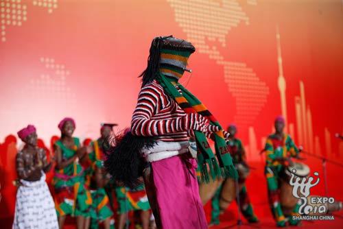儀式上,來自贊比亞的演員表演了擊鼓和舞蹈。