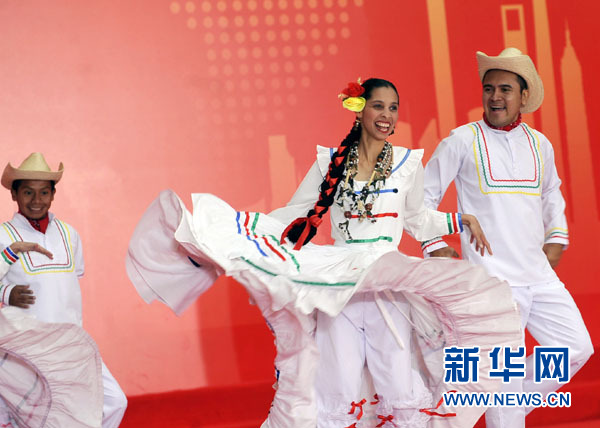 2010年10月27日 上海世博會(huì)迎來洪都拉斯國(guó)家館日 10月27日,洪都拉斯演員在國(guó)家館日儀式上表演舞蹈。當(dāng)日,上海世博會(huì)迎來洪都拉斯國(guó)家館日。 新華社記者劉穎攝