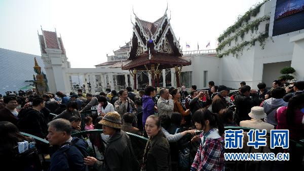 10月31日,游客排隊(duì)等候進(jìn)入泰國(guó)館參觀。
