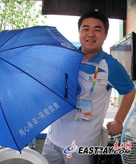 作為浦東園區(qū)最大入口處的志愿者站點(diǎn),汪愛華和她的同事們已承擔(dān)著相當(dāng)繁重的工作。這些榮獲了六月團(tuán)隊(duì)之星獎(jiǎng)的大小“白菜”們向記者總結(jié)了目前為止游客遇到的主要問題,并表示為了應(yīng)對豪雨驟降,很多志愿者崗?fù)ひ雅鋫淞藧坌钠鱾阋怨┏鼋,僅6號門站每天被外借的數(shù)量在20把左右。