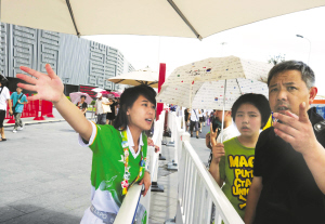 在中國(guó)館服務(wù)的志愿者中,14名華僑華人志愿者與園區(qū)內(nèi)眾多的“小白菜”沒有明顯的區(qū)別。他們之中,陳珍怡、陳桃怡、陳天怡互相以姐弟相稱,姐弟3人不僅來自同一個(gè)家族,還同是“中國(guó)世博第一人”的后代。