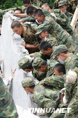 在那些瓦礫間,還有我們的兄弟姐妹在呼吸;在那些廢墟下,還有我們同胞的靈魂沒有安眠;在那些城市和山野,還有許多親人朋友在互相尋找、守望! 震區(qū)和從國內(nèi)外各地迅速趕來的救援隊伍,在受傷的城市和鄉(xiāng)村穿行、挖掘、搬運;那些綠色、藍色、橙色、迷彩的身影,在沒有炮火的戰(zhàn)場上流汗、流血、流著淚水……