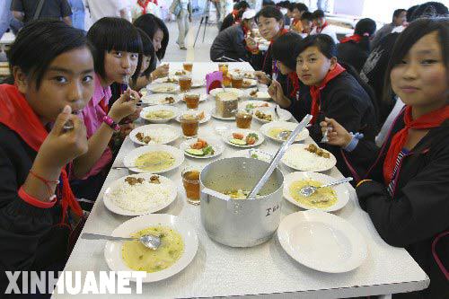 7月17日,在俄羅斯符拉迪沃斯托克市,災(zāi)區(qū)中小學(xué)生在享用她們抵達(dá)俄羅斯后的第一頓美餐。當(dāng)日,赴俄羅斯療養(yǎng)的364名四川地震災(zāi)區(qū)中小學(xué)生從北京、成都兩地抵達(dá)俄羅斯符拉迪沃斯托克市,其中91名在北京首都機(jī)場乘坐國航包機(jī)的學(xué)生首批到達(dá)。療養(yǎng)團(tuán)的所有成員將入住符拉迪沃斯托克市的“海洋”全俄兒童中心,開始為期20天的療養(yǎng)。 新華社記者鄭悅攝
