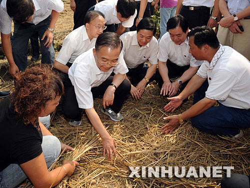 9月1日,溫家寶在德陽市孝泉鎮(zhèn)涌泉村視察農(nóng)業(yè)生產(chǎn)情況,向搶種洋芋的村民詢問洋芋的種植方法、產(chǎn)量和收入情況。新華社記者 黃敬文攝