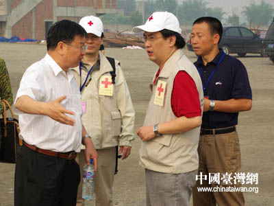 20日下午,臺灣紅十字組織醫(yī)療隊帶約3噸醫(yī)療用品等物資前往廣漢市,21日在高坪鎮(zhèn),23日在體育場救災點設立醫(yī)療救護站,展開救護服務。救護站設有中、西醫(yī)。從21日至24日共計診治476名。對數十名老弱災民進行體檢,做了一臺氣胸手術、兩個骨折手術。和一個頭皮縫合小手術。內、外科,兒科,針灸,急處方發(fā)藥點。巴蜀音像制作中心 蘭志泉 攝
