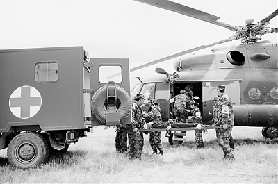 衛(wèi)勤綜合保障演練。[圖片由總后勤部衛(wèi)生部提供]