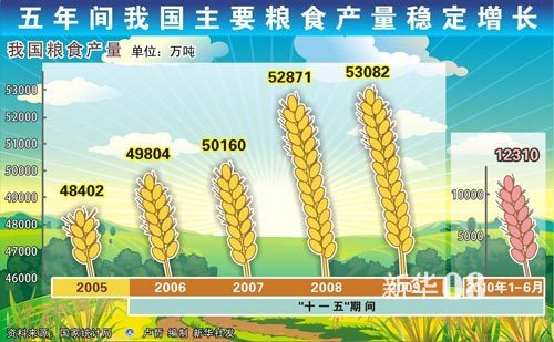 新華社圖表,北京,2010年10月11日圖表:五年間我國主要糧食產(chǎn)量穩(wěn)定增長 新華社發(fā)